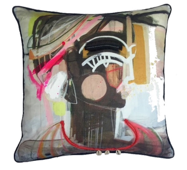 This collaboration between Sally King Benedict and Beth Lacefield features six unique designs. Each pillow highlights one of Sally’s celebrated face paintings with hand-painted accents by Sally and hand-embellishments by Beth.