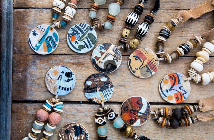 The Twine & Twig x Sally King Benedict limited edition necklaces launched in July 2018. A curated collection of 100 one of a kind necklaces. Each piece features a naturally shed antler slice that has been hand painted by Sally and designed by Twine & Twig using globally sourced beads. Each necklace is a unique and individually numbered wearable piece of art.