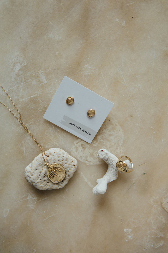 Launched November 1, 2017, a new jewelry collection with Charleston-based Jane Pope Jewelry. Friends for years, Jane Pope and Sally King Benedict have always admired each other’s craft. During Jane’s travel to Portugal inspiration sparked when she came across roman coins with raised faces. These coins instantly reminded her of Sally’s work. They have come together to create a collection of fine jewelry inspired by roman coins, old-world crests, and the nature of a wax seal. With Jane’s delicately imperfect shapes and Sally’s abstract figures, a collection of truly special pieces was created. Like the patron saint of Christopher, these...