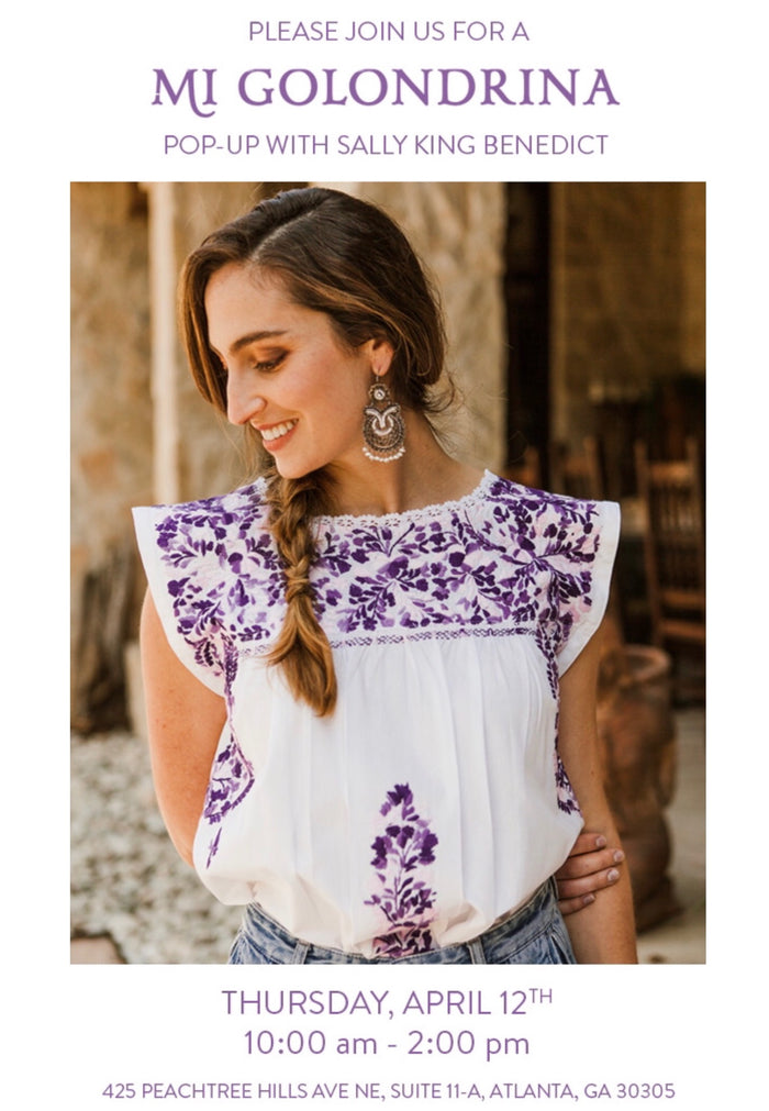 Join us Thursday, April 12th for a pop up shopping event with Mi Golondrina! Each item in the Mi Golondrina collection is hand-stitched by talented artisans in small Mexican villages. The brand started with the intention to bridge the gap between the modern woman's wardrobe and the traditions of Mexico.
