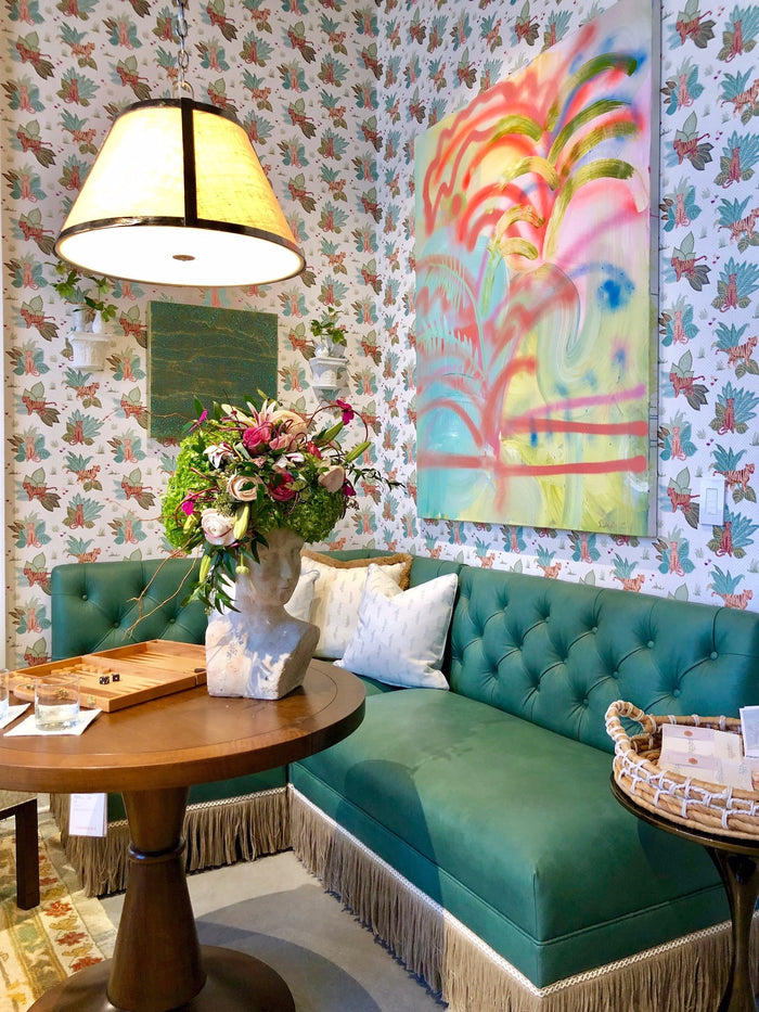 SKB and Studio Four NYC collaborated to create custom wallpaper for Sally's suite of rooms in the Southern Style Now Showhouse in Savannah, Georgia, presented by Tradition Homes. Starting with the SKB face, Studio Four then designed a large scale mosaic pattern drawing from the lush brush strokes of Sally's paintings.
